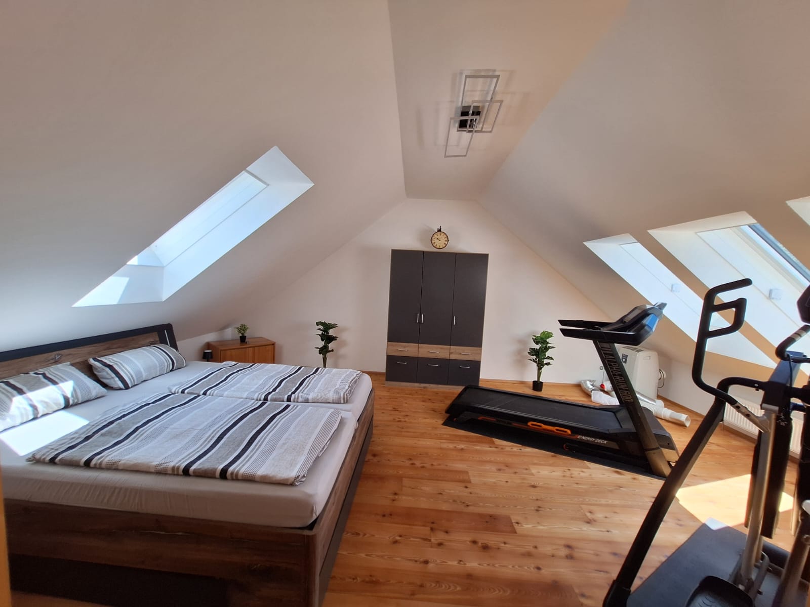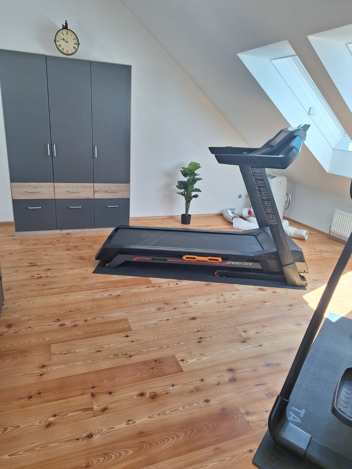 Das Apartment bietet auf großzügigem Raum zwei separate Schlafzimmer mit komfortablen Doppelbetten sowie ein zusätzliches Wohnschlafzimmer mit TV, das ebenfalls Platz für zwei Personen bietet – ideal für Familien, Paare oder kleine Gruppen. Ein Schlafzimmer verfügt dabei zusätzlich über zwei Fitnessgeräte (Laufband & Stepper). Kostenloses WLAN ist im gesamten Apartment inkludiert.