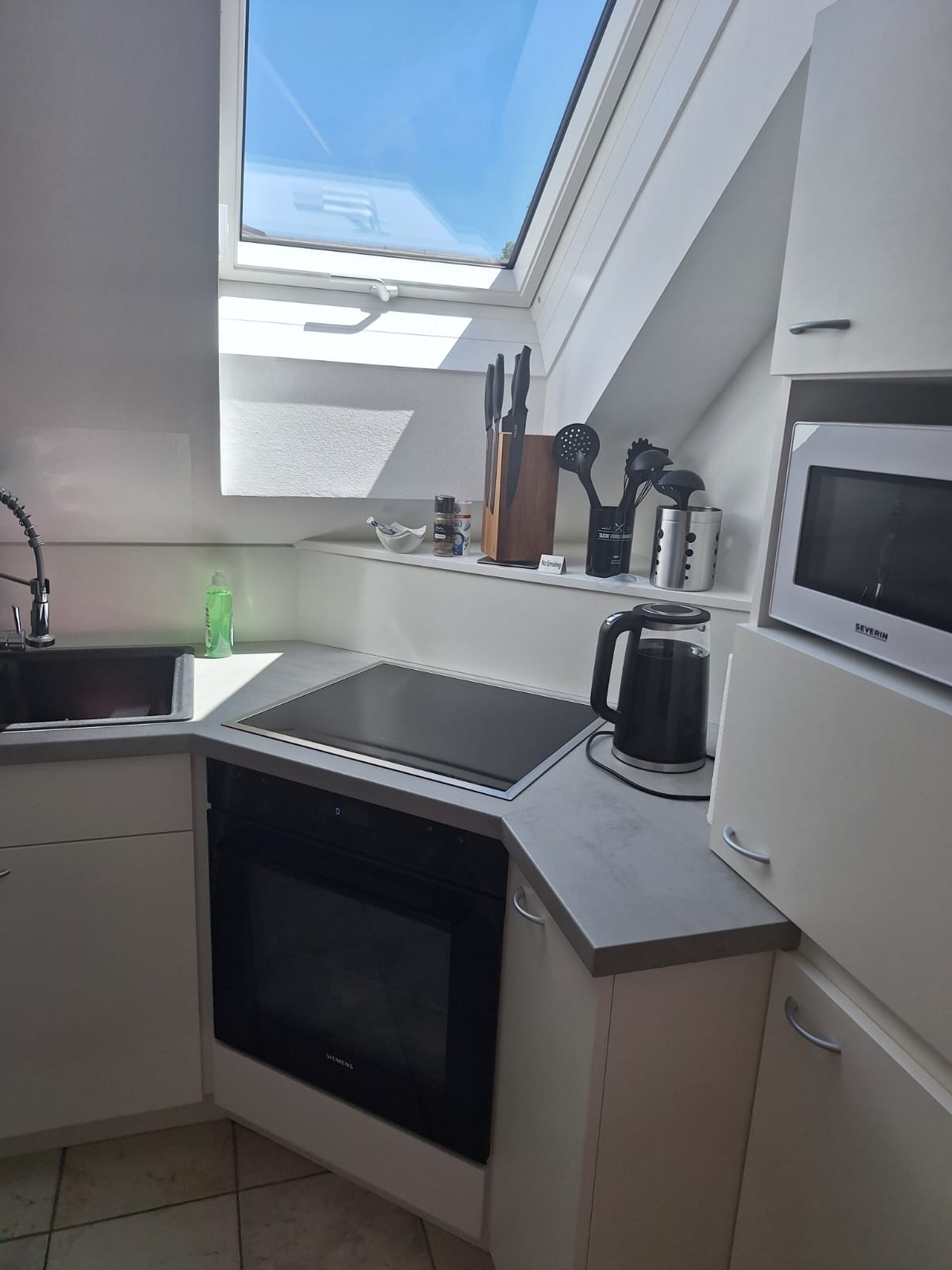 Die voll ausgestattete Kochnische lässt keine Wünsche offen: Kühlschrank, Mikrowellenherd, Dampfgarer, Spülmaschine, Kaffeemaschine, Teekocher, Geschirr und sämtliche Küchenutensilien stehen bereit, damit Ihr Euch ganz nach Eurem Geschmack selbst versorgen könnt. Kaffee und Tee sind übrigens im Übernachtungspreis inbegriffen. Auch Begrüßungsgetränke (Bier, Wein, Prosecco und Mineral) werden Euch gerne am ersten Tag kostenlos zur Verfügung gestellt.