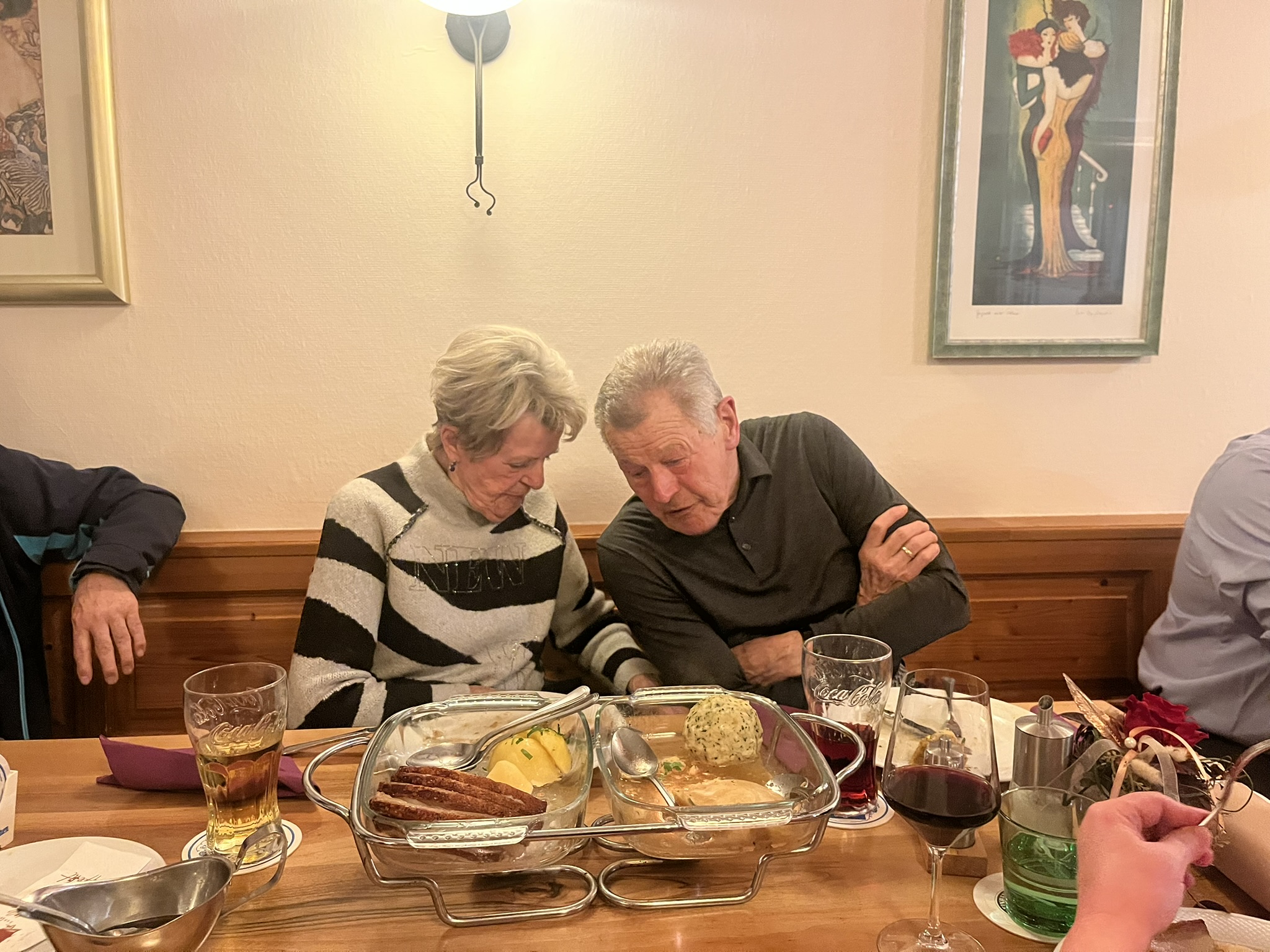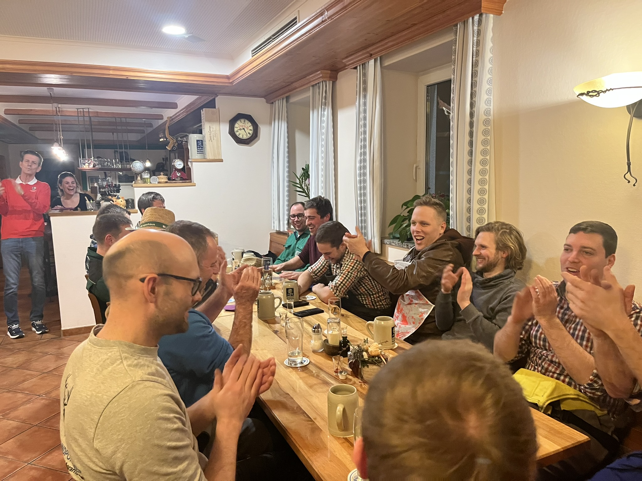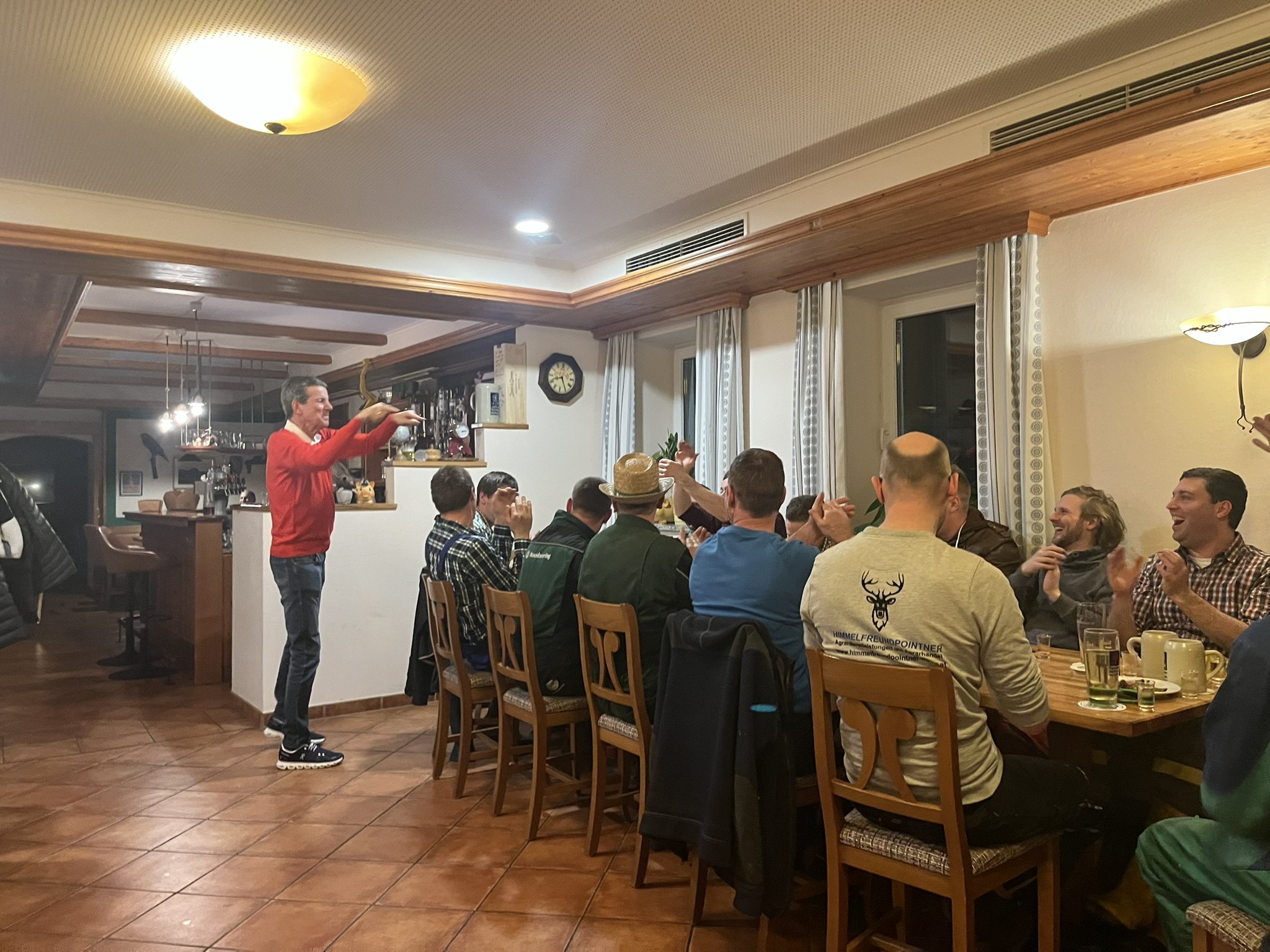 Die Spieler sowie die zahlreich zur Abendveranstaltung im Landgasthof Sonntagbauer gekommenen Partner und Freunde genossen ein großartiges Bratl in der Rein von Gastgeberin Erika und verfolgten eine Siegerehrung, die im Beisein einer unglaublich netten Polter-Truppe einzigartig stimmungsvoll war.